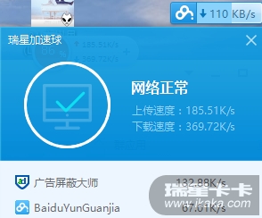 1.误差较大,测试中云管家显示110K基本稳定,但加速球显示数据波动很大,高低不等,本地4M网速,有时加速球上数据可显示600K+。