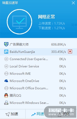 2.有时看加速球的时候发现界面上面的上传下载速度总和小于下面的详细数据的分项
