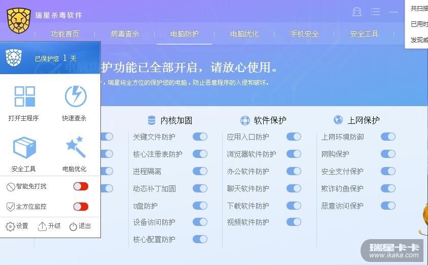 4、修复一次之后,  主程序能打开了 ,但是  右键托盘显示 所有防御都关闭了,并且 打不开!!!