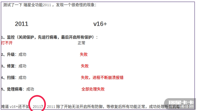 而 我记得 2011时 ,瑞星能 在全盘时 ,检测 活体病毒,并在处理病毒时 ,能 尝试结束病毒进程,所以 瑞星能杀干净!!!