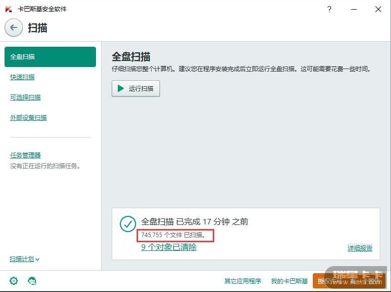 发现 卡巴 50分钟 执行完了 全盘扫描