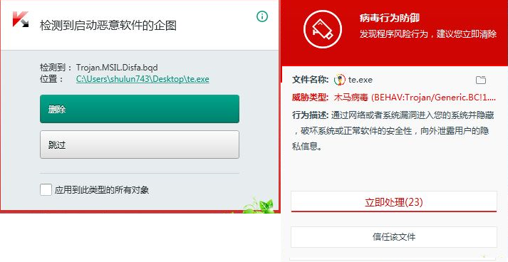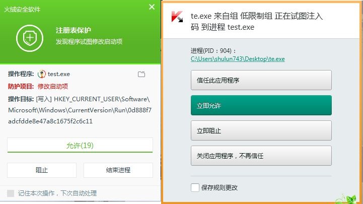 既然 病毒 进程 都入库了,  那 你的系统加固 还询问 用户 干什么》?  为何不直接 阻止呢??? 不要弹窗了 ,这不是 画蛇添足吗???
