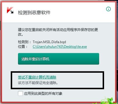 瑞星的  重启前 不再提示 ,bug  太多 ,根本无效 点击的 手痛!!!