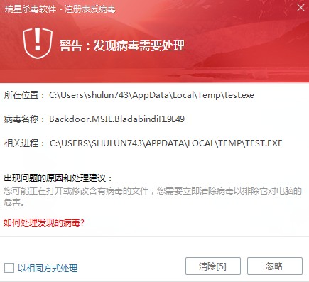 1楼要说的就是,希望瑞星对于一个病毒而言,如果用户一不小心点击错了而放过监控提示,安全软件能针对病毒的行为动作而做出  多层次的防御和保护(如,火绒的病毒防御,注册表保护,文件保护),从而确保病毒不会对用户电脑系统造成危害。也就是说,根据病毒的进一步危险的行为动作,能给与用户后悔的机会防护。