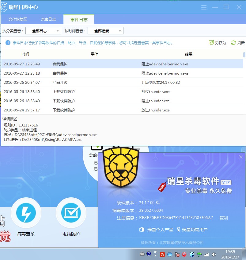 这不是误报,应该是PP安卓助手触发了瑞星的自我保护机制,才导致自我保护拦截的。