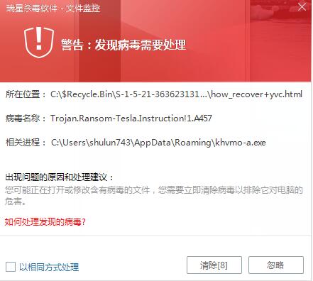 看看一楼  这个 病毒 行为 ,  都 加密了 很多 文件了 ,瑞星却没有对这个病毒进程 控制一下, 一直 跟在病毒后面和它 赛跑 ,  若是 控制一下病毒行为 ,    就不会 出现这个问题的!!!
