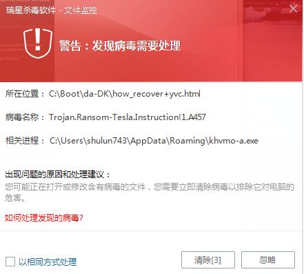 2、瑞星 文件监控 清除病毒时 ,没有触发  函数不正确的提示!!!