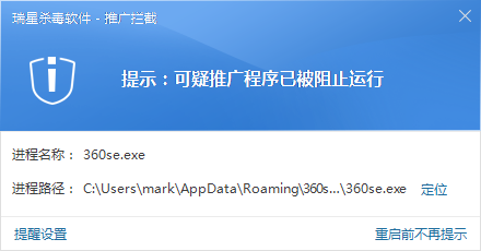 瑞星卡卡安全论坛个人产品讨论区瑞星杀毒软件 联盟版 又 拦截推广失败了, 进程控制也不行啊