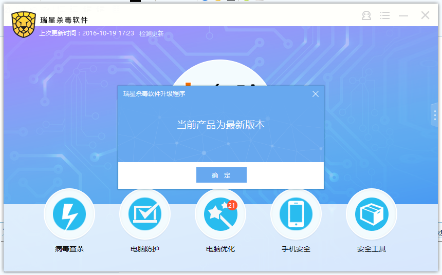 回复:win10系统,瑞星V17更新后,软件显示最后的更新时间一直未变