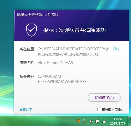 就是这个,大家没点技术的千万别点开,我只想证明一下不是我黑瑞星,是它自己不争气!~