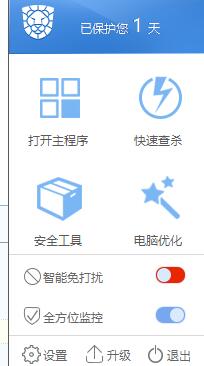 依然能开机启动,从右下大多时候能点开主程序,偶尔也会点不开。右键杀毒无反应。鼠标的状态会“忙”,然后就什么也不出来。插入U盘也没有弹出监控(怀疑此时其他监控也无效)。状态栏图标右键的“全方位监控“的开关,点击无反应。