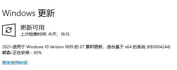 使用中突然电脑卡顿,散热风扇在一直响,资源管理器显示光星星的进程cpu占用30%以上,目测是系统自动更新了,打开设置一看果然系统后台在自动打补丁,公司电脑没工具就截两个图
