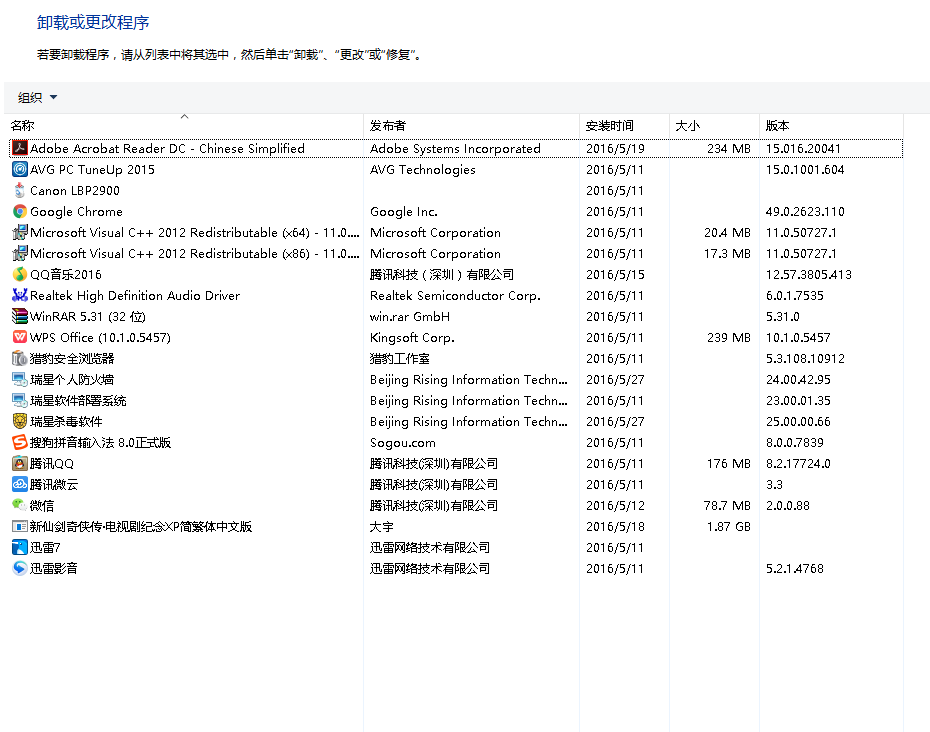 电脑里装了以下内容