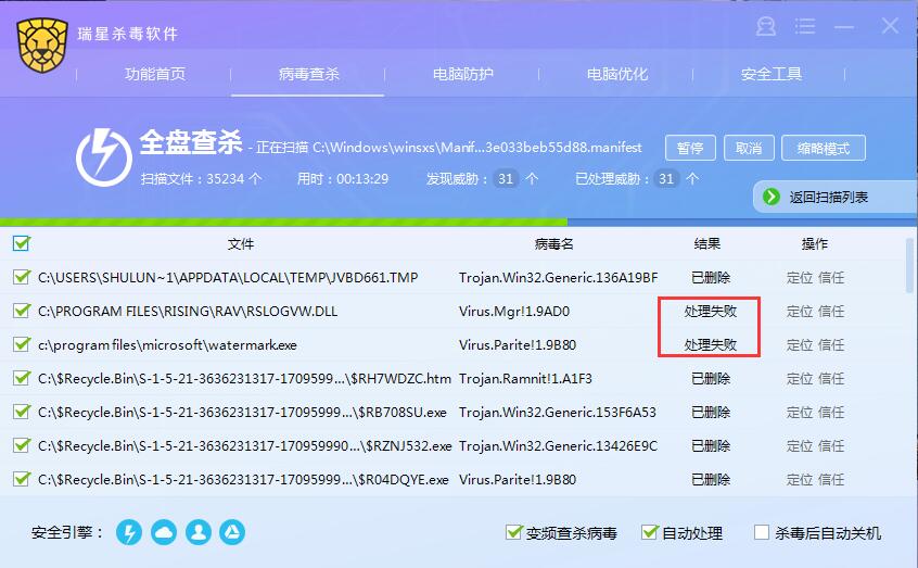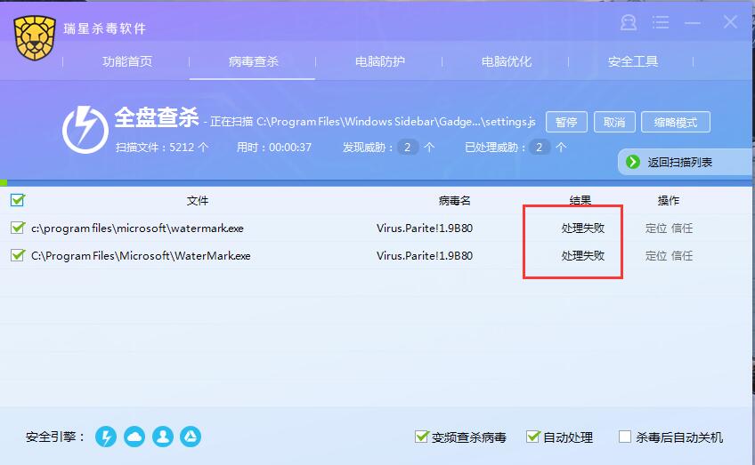发现瑞星的 驱动没有任何增强 , 在瑞星自保 提示的情况下,还是被感染 !!!