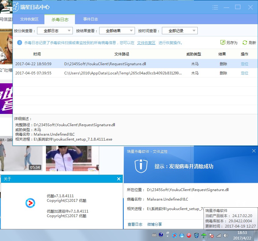 安装优酷软件时,发生疑似误报的现象。(如图所示)
