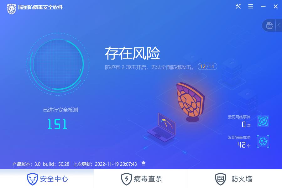 通过右下角的防护中心进入主界面,会发生防护显示与实际防护状态不统一。