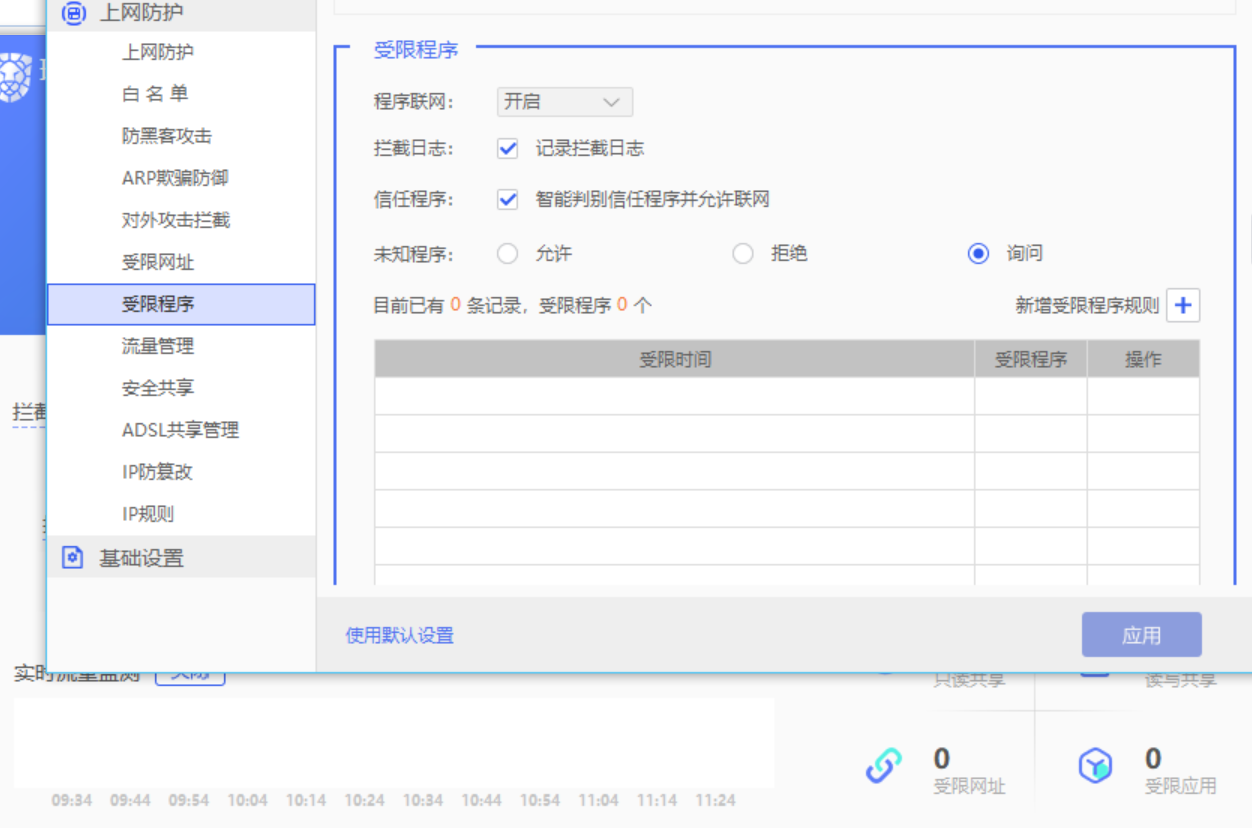 截图右下角受限网址和受限程序点出来弹出的设置页面不对应
