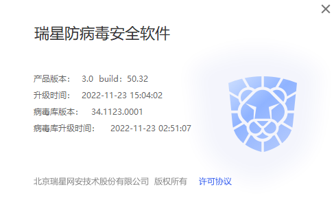 如图,软件升级时间是用户进行升级操作的时间,但是很奇怪的是病毒库升级时间却是瑞星更新病毒库的时间
