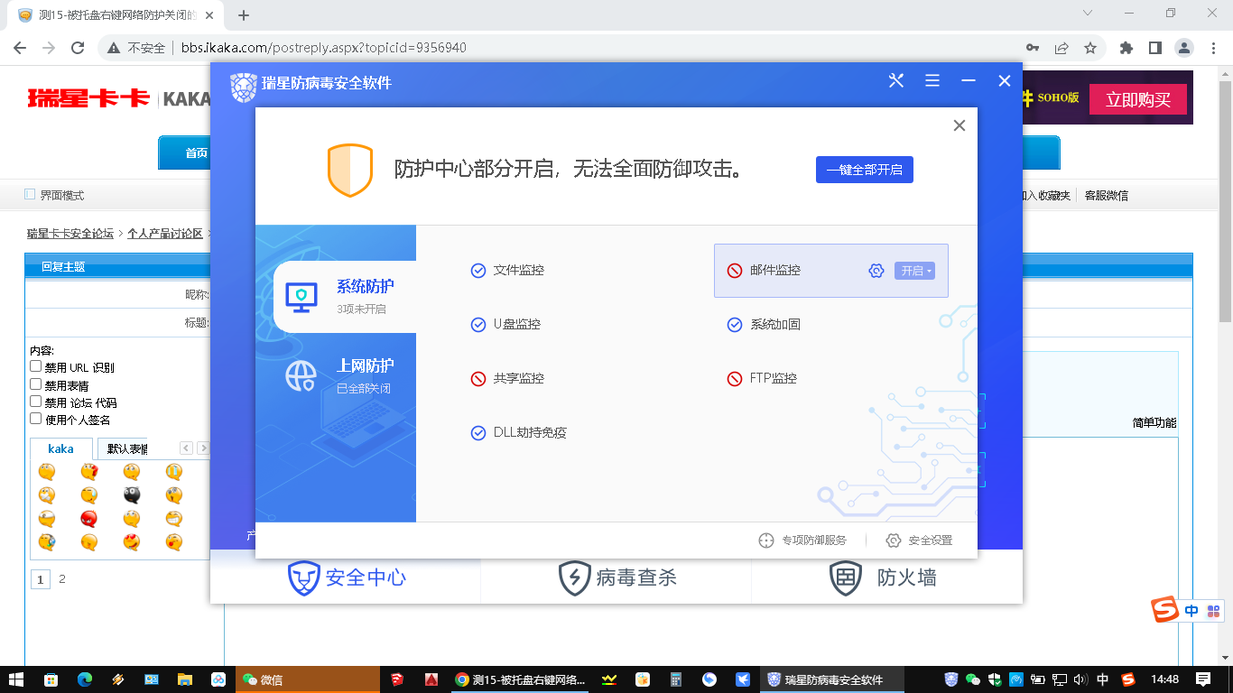 回复:测15-被托盘右键网络防护关闭的选项无法通过主程序一键开启功能打开