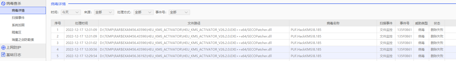 2.不久监控报发现病毒,但点击清除却无法清除;