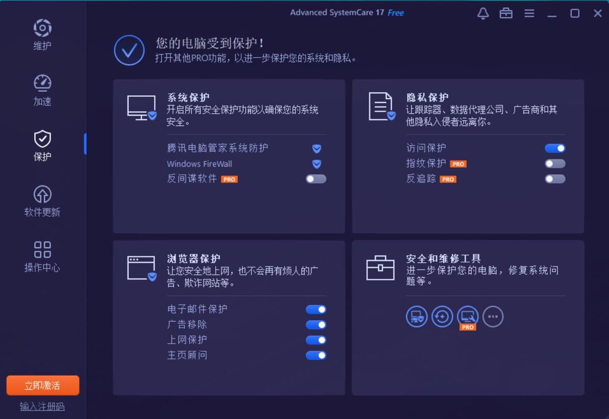 一个清理软件都有反间谍功能,AI清洁也很好,这点瑞星也要学习下,浏览器保护功能要覆盖到火狐126、谷歌125、Edge125的支持。