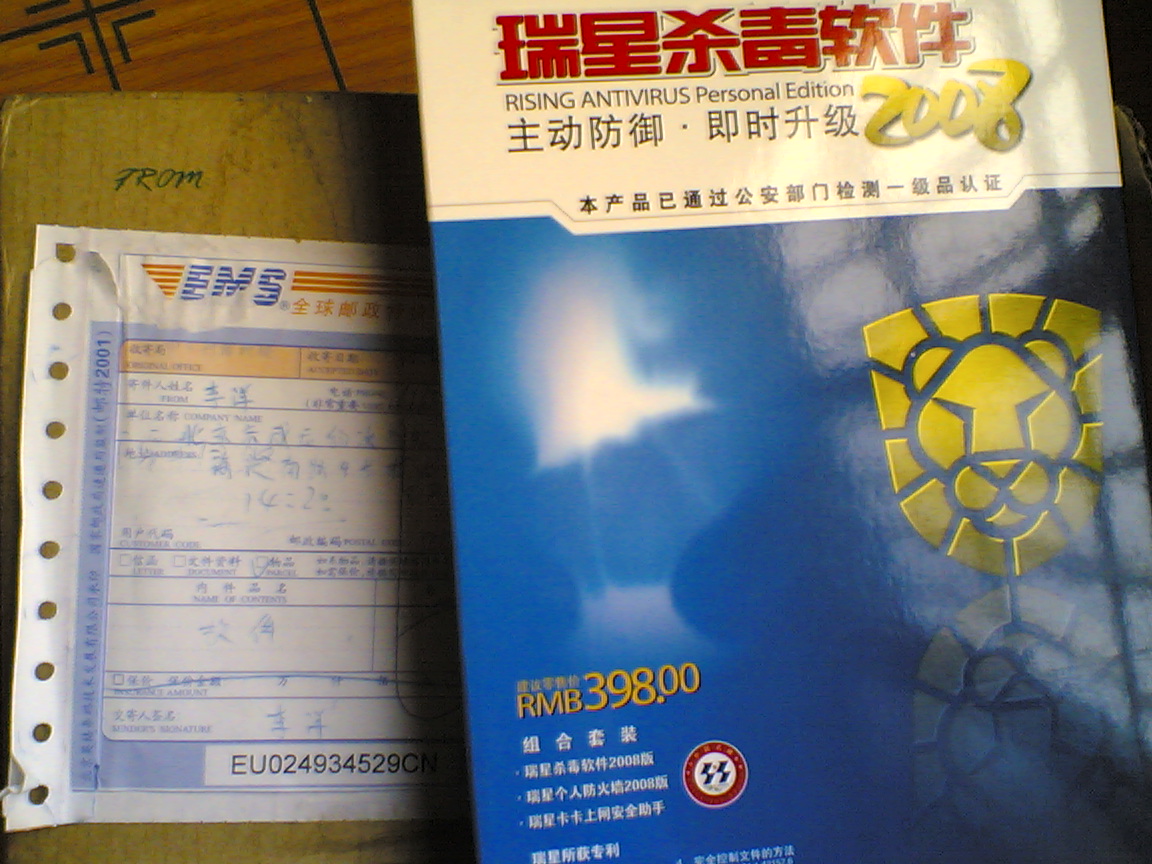 刚刚收到瑞星的EMS,打开盒子一看是瑞星2008版,好开心
