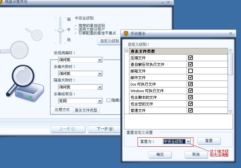 问题一:在下面图 重置自定义设置 重置为 因为选择不同的级别,上面自定义级别中的选项会随之变化,而不前不管选择什么级别,上面的选择项都不会变化