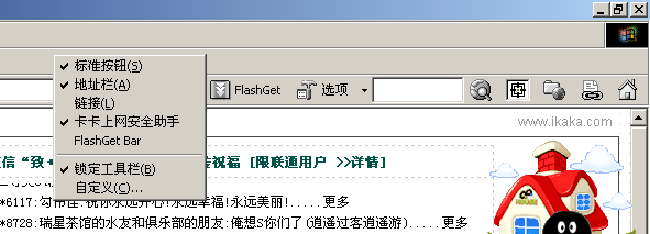 【shawtian的贴子】不是啊,海生同志,这个是ie典型的工具栏管理错误,老有的,有时候不定你装了几个工具栏就出现这个标题错,幸亏卡卡在开始菜单有个强制显示,只要强显一个,这个问题马上解决掉的