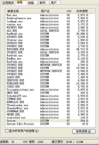 新装的xp sp2 正常使用约10天,系统和杀毒都可以更新,前天开始出现关机到最后“正在关机”就一直定在那了,没有办法正常关机。打开什么都是奇慢,我查看进程 cpu 100% 但是除了系统自己开的东西外,其他我都没有开,不知道是不是中毒,大家帮我看看,谢谢!我用瑞星杀毒一个中午和下午连D盘都没有扫完,太慢了,受不了。我就把C盘(装98)、D盘(装xp)格了,用ghost恢复了一次,但是还是不行。对了还有就是不能正常进入98系统。大家帮出个点子吧!