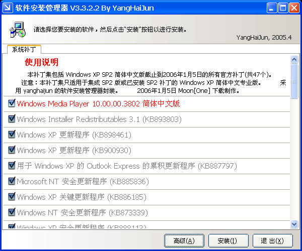注意:本补丁集只适用于集成 SP2 版或已安装 SP2 补丁的 Windows XP 简体中文专业版。