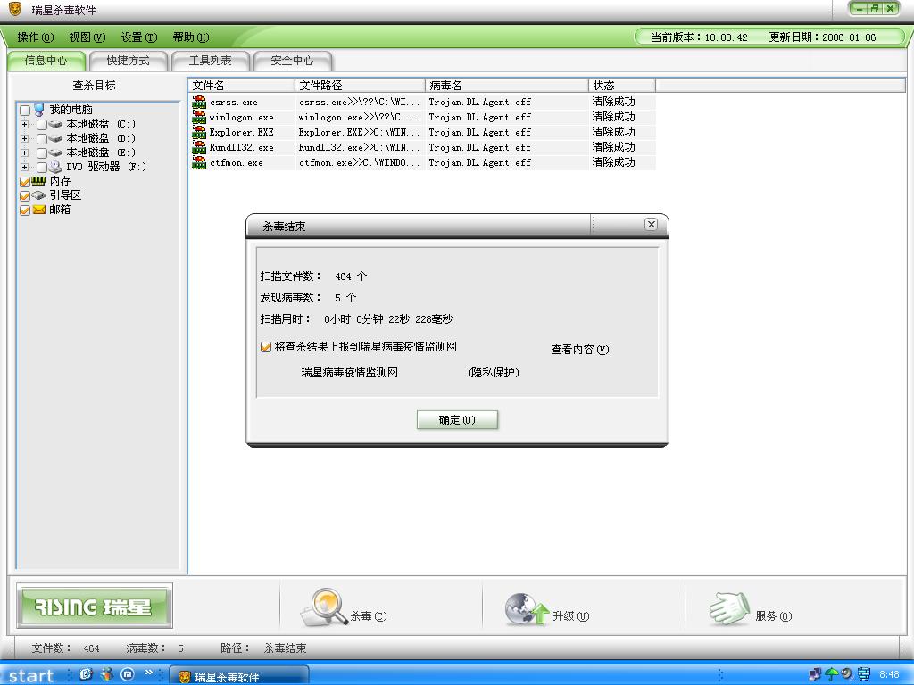 刚才杀毒之前的扫描结果: