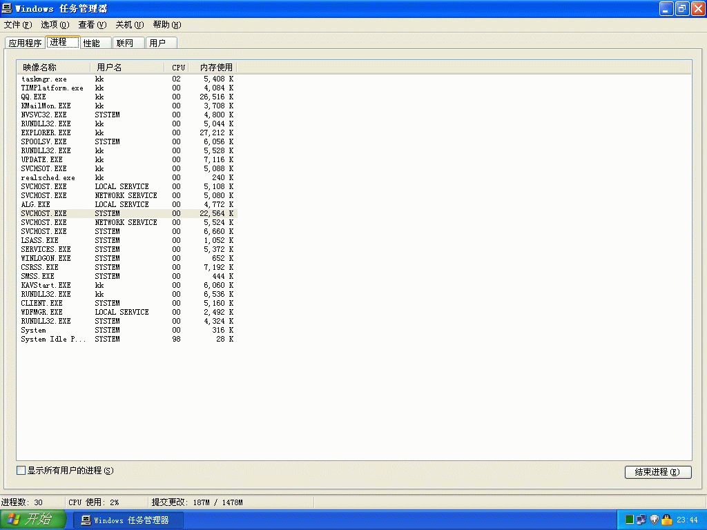 SVCHOST.exe这个进程就占用了22564K内存