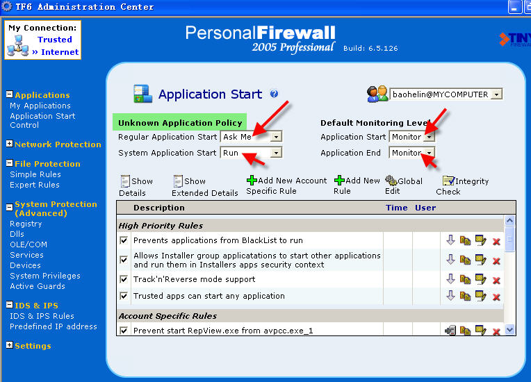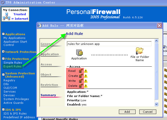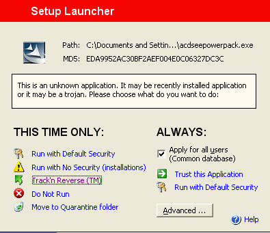 2.用的就是默认设置,我运行QQ、Ad-aware、梦幻西游等等,都没有出现图中的这个框,而是直接加入到了Trusted列表。