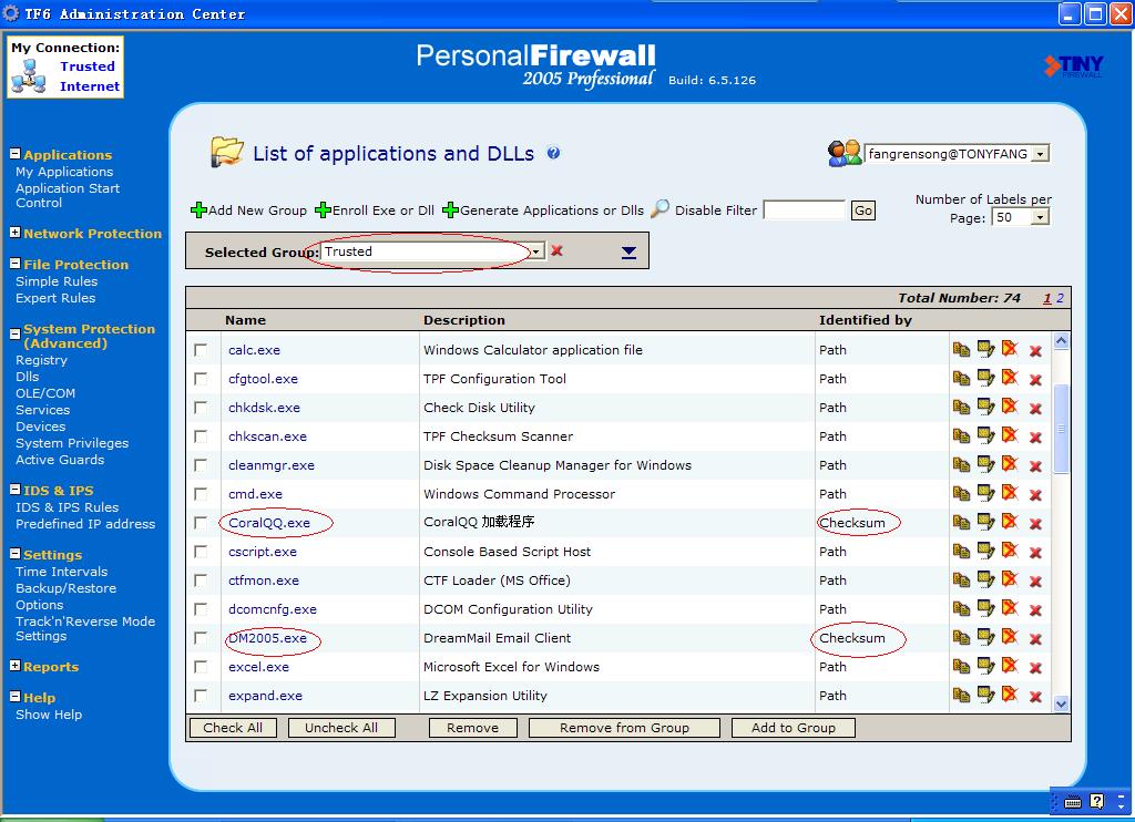 比如说,我运行QQ、DreamMail,理应它出现你贴的那个setup launcher的那个提示图,但是我这里是这样的,直接在Trusted列表中就看到了,没有任何提示: