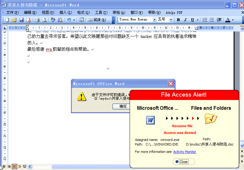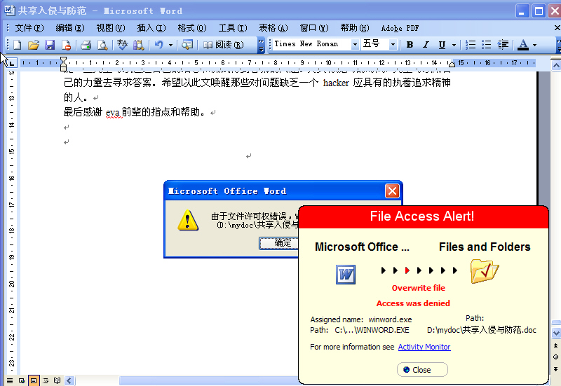还是用懒人的懒办法——用TFP2005的“文件保护”。试了一下,结果似乎还算满意。之所以说“结果似乎还算满意”,是因为这个措施还未经过实际的网络入侵检验,下面只是我自己在系统中初步试验的结果。