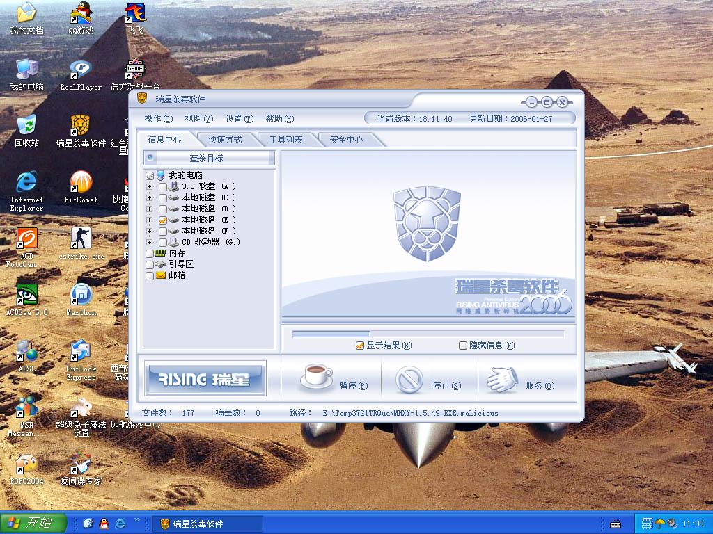 用瑞星扫描E盘到一个文件卡住过不去了!怎么解决!