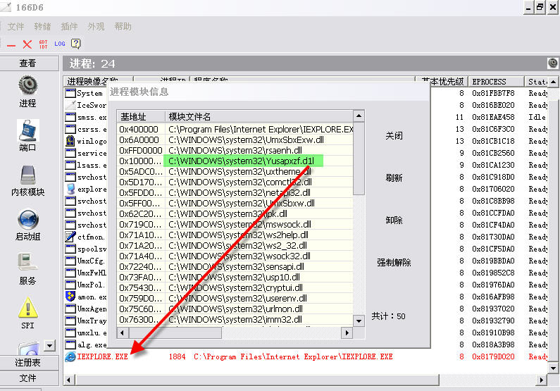 结果发现那个Yusapxzf.dll和Yusapxzf.sys还是加载运行了。卡巴斯基也报警,但杀不掉。