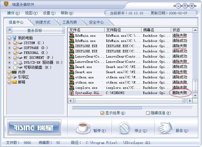 我怎么杀不了Backdoor.Gpigeon.tfs ?【求助】