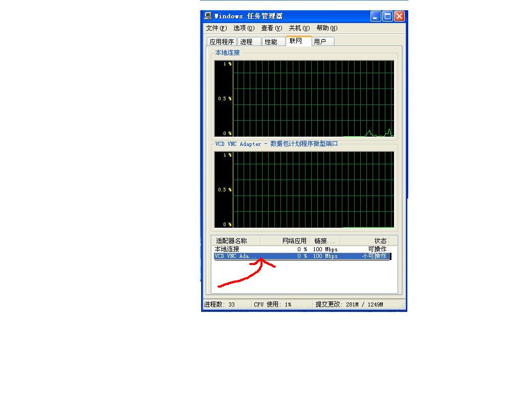 在任务管理器中联网中出现(VCD VNC Ada...)一个联接是怎么回事