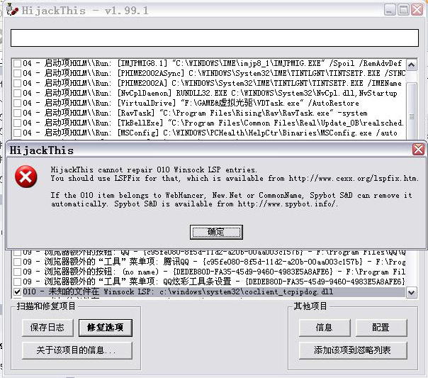 单击我个人签名中最新汉化版的:HijackThis