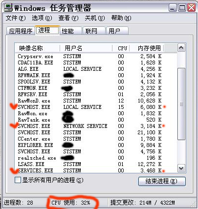 SVCHOST.EXE    SYSTEM            cpu使用00          3428K