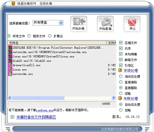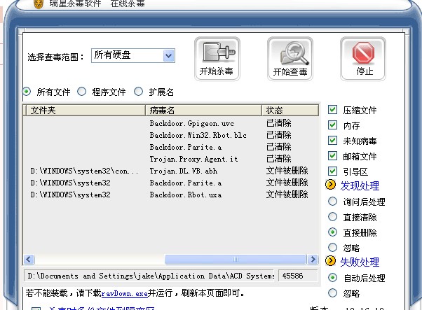 怎么还是2005的界面呢~!?还有这些病毒瑞星在线杀不了麽?
