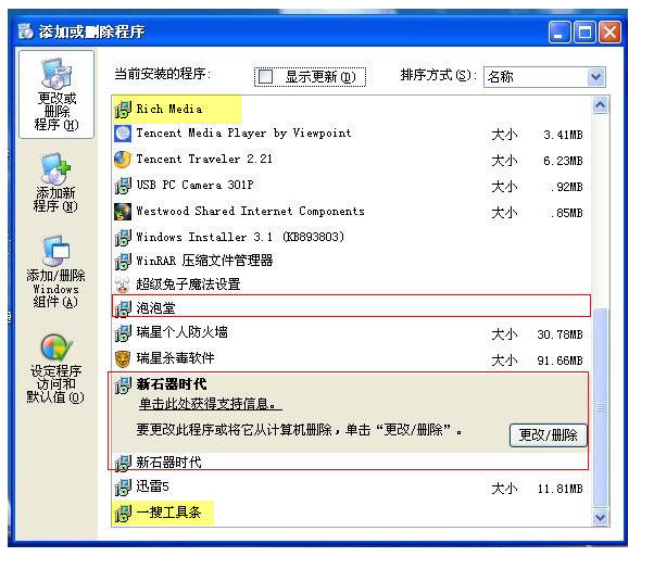 在{添加或删除}里删除不了东西!!!