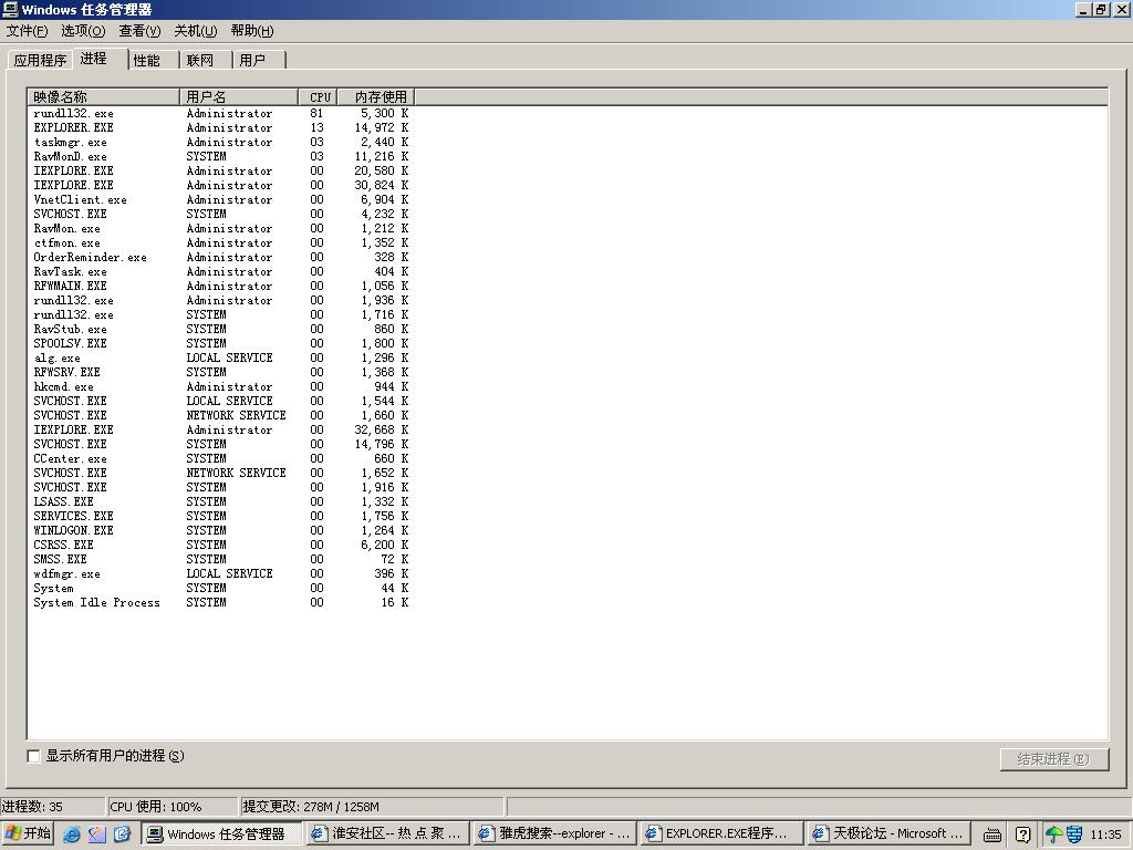 从上个星期开始,我的电脑在浏览网页时速度非常慢,检查进程时候发现CPU使用都在100%,在切换网页时候经常是RUNDLL32.EXE占据了100%CPU使用.如果把这个进程关了,就会切换的非常快。已经用瑞星查过,没有病毒。请问是怎么回事?