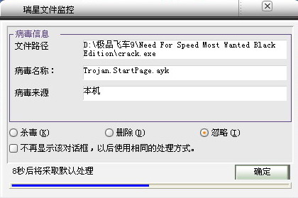我安装了极品飞车9这个游戏,经过瑞星扫描后发现“Trojan.StartPage.ayj”这个病毒。杀完病毒后游戏也不能玩了。这如何解决?