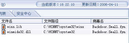 今天瑞星升级后,检测出Backdoor.Small.fyn病毒,不知该如何查杀???