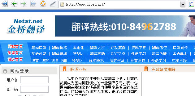 对了,我登录的就是这个金桥翻译中心的网页,网址:http://www.netat.net/