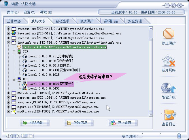防火墙那样提示并是说一定就是有鸽子,也可能是你系统中的某个程序正在使用这个端口,和鸽子的一样!