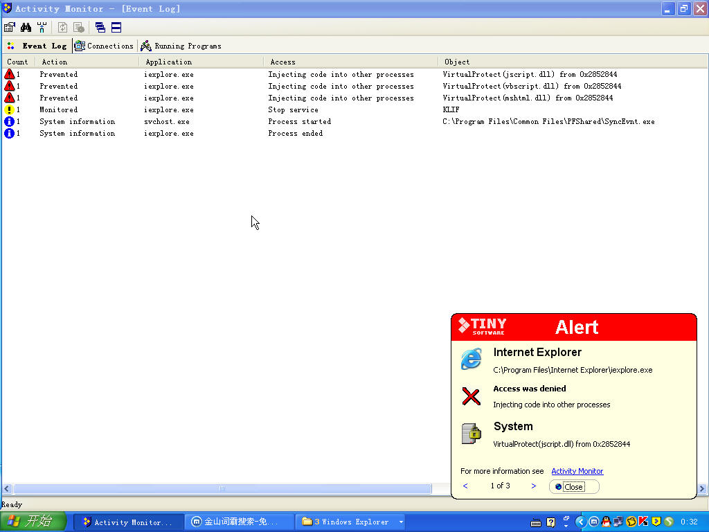 关闭ie浏览器时,activity monitor给出下列提示!