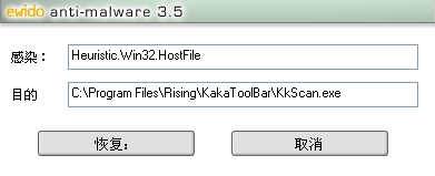 今天从ewido anti-malware主站下载了3.5版本.扫描了一下.别的无问题.却报卡卡文件夹里的这个文件有问题.是否错报??